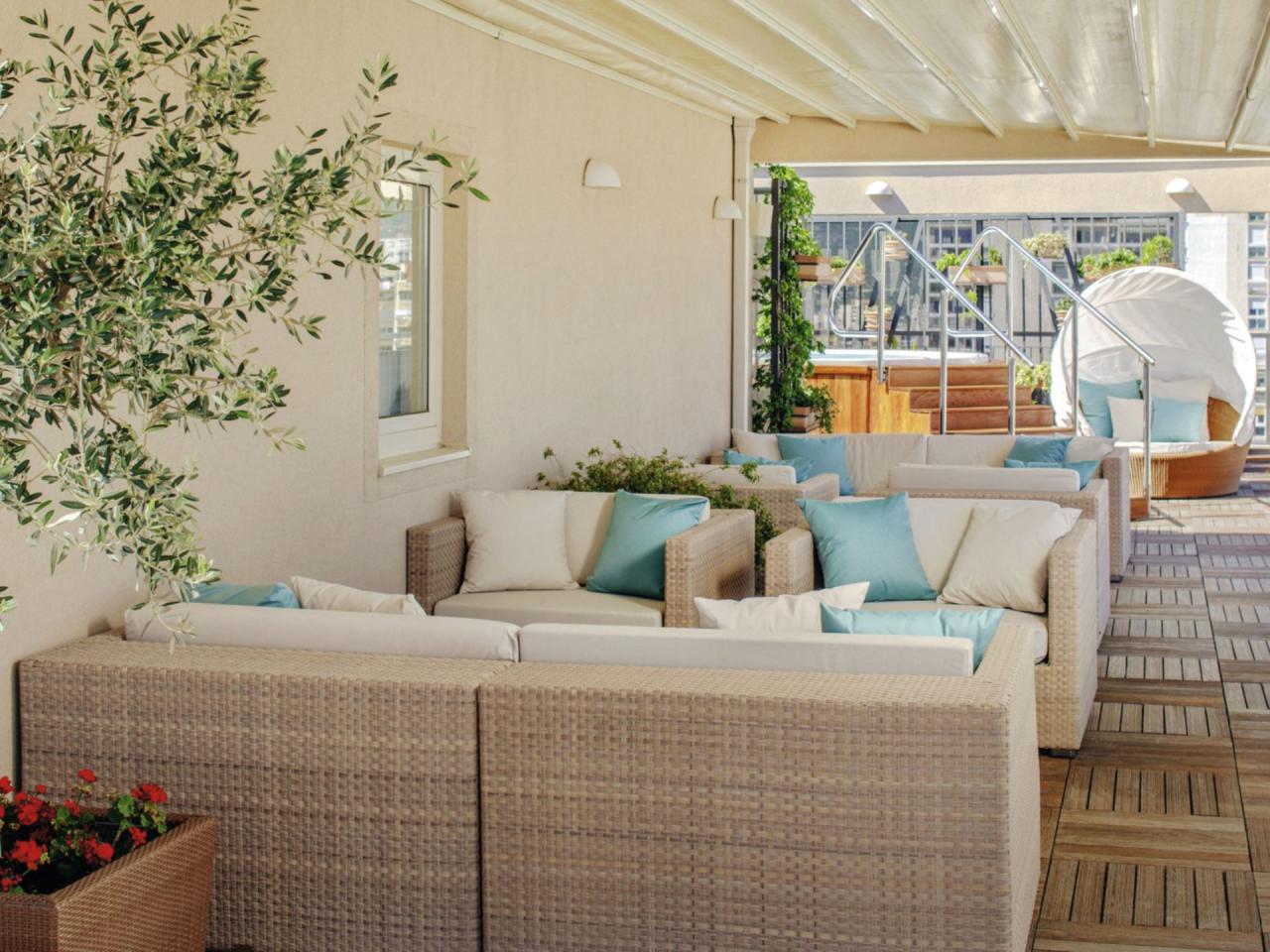 vodou, na střešní terase, ve wellness centru |